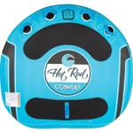 (deflated) round towable with 4 nylon wrapped handles and neoprene knuckle guards.